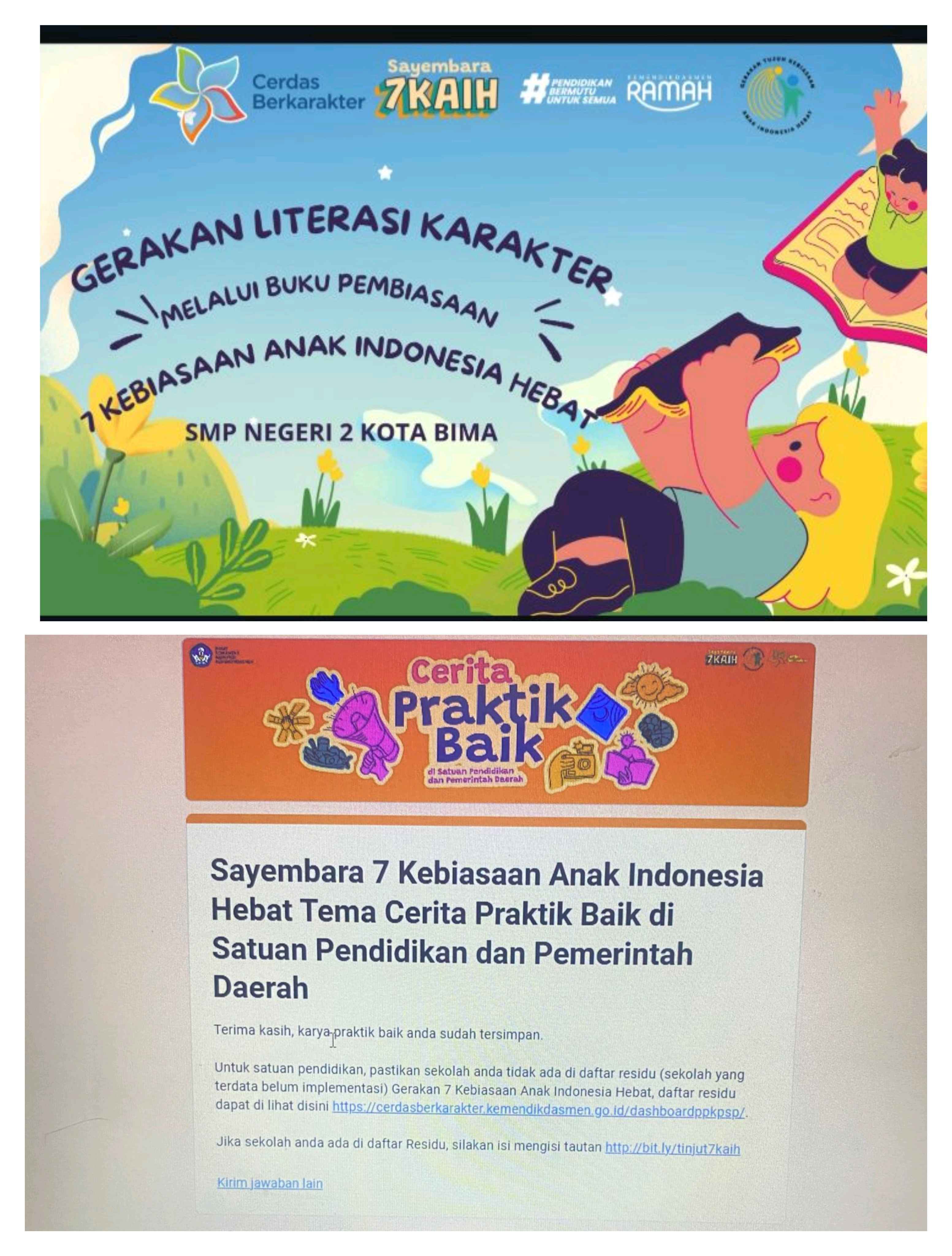 Kota Bima, 27 Oktober 2025 — Salah satu guru inspiratif dari SMP Negeri 2 Kota Bima, Ibu Puspita Hardining,S.Pd berhasil mengikuti Sayembara 7 Kebiasaan Anak Indonesia Hebat (7KAIH) yang merupakan bagian dari Gerakan Literasi Karakter melalui Buku Pembiasaan 7 Kebiasaan Anak Indonesia Hebat.