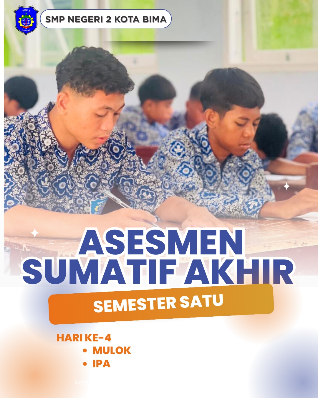 Kota Bima, 11 Desember 2025 — SMP Negeri 2 Kota Bima kembali melanjutkan rangkaian Asesmen Sumatif Akhir (ASA) Semester Satu Tahun Pelajaran 2025/2026. Pada hari keempat pelaksanaan, siswa mengikuti ujian pada dua mata pelajaran, yaitu Muatan Lokal (Mulok) dan Ilmu Pengetahuan Alam (IPA).