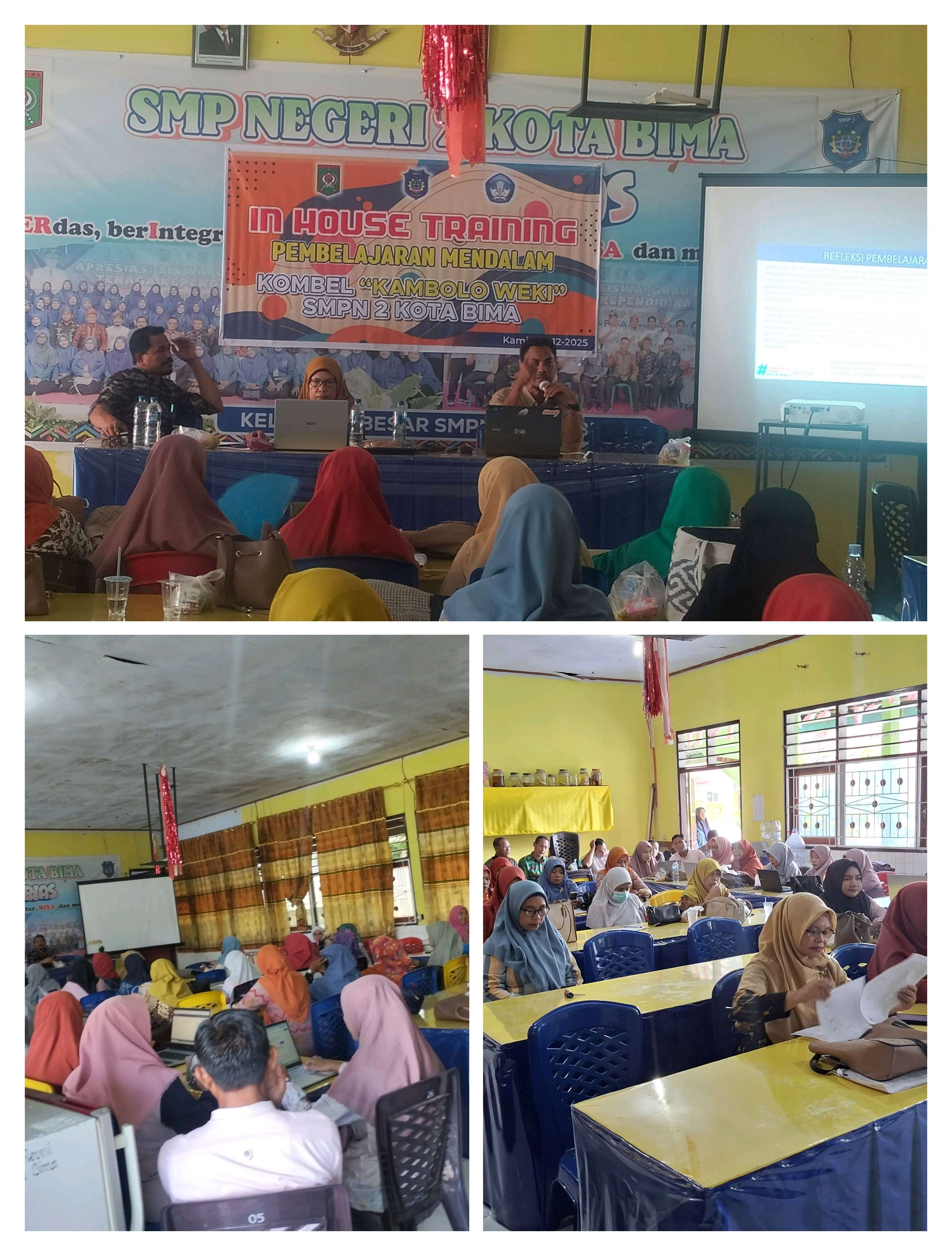 Kota Bima, Kamis 18 Desember 2025 — SMP Negeri 2 Kota Bima melaksanakan kegiatan In House Training (IHT) Pembelajaran Mendalam melalui Komunitas Belajar (Kombel) “Kambolo Weki” pada Kamis (18/12/2025). Kegiatan ini diikuti oleh seluruh guru SMP Negeri 2 Kota Bima sebagai upaya peningkatan kompetensi pendidik dalam menghadirkan pembelajaran yang bermakna dan berpusat pada peserta didik.