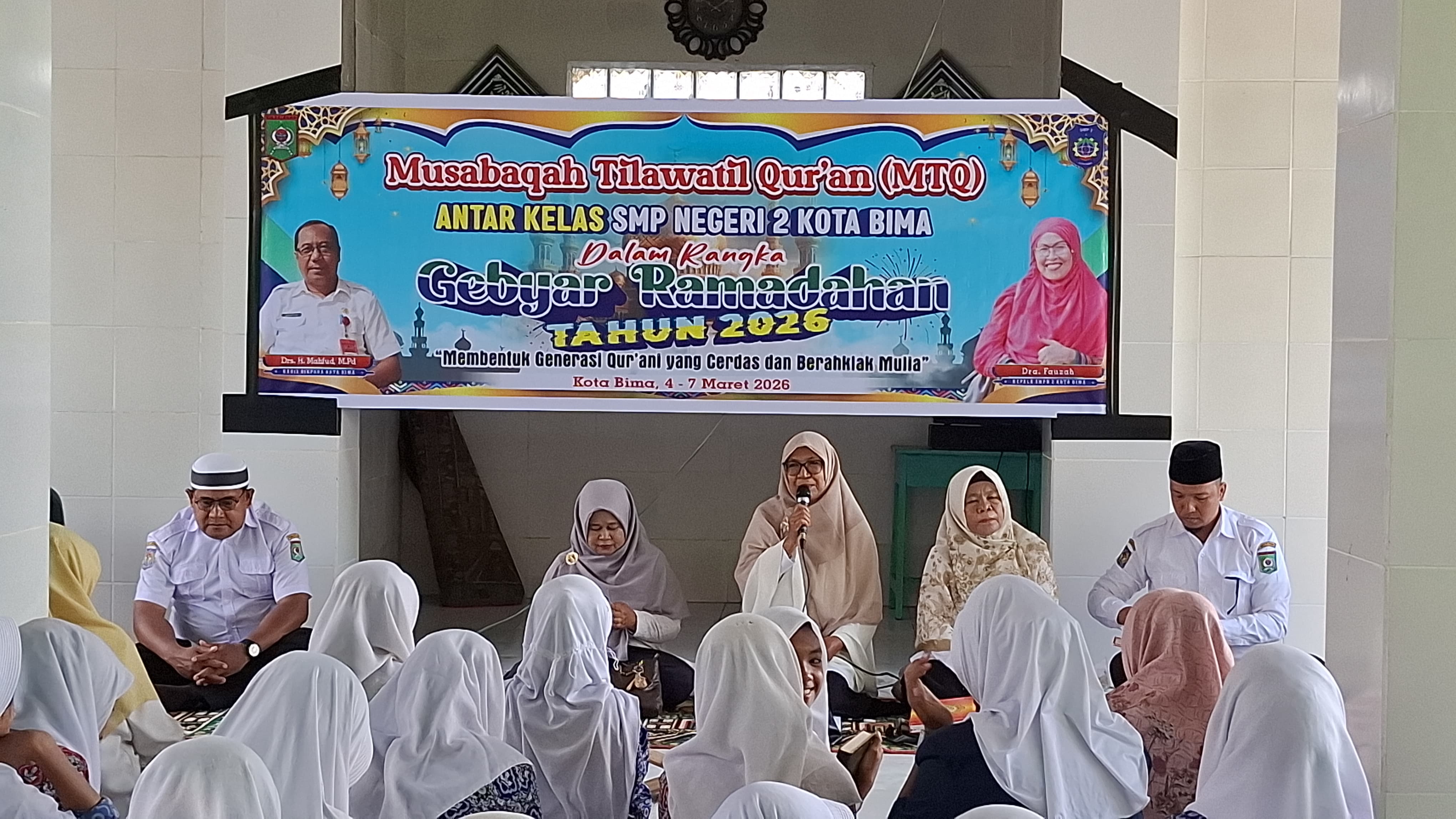 Kota Bima, 4 Maret 2026 – Kegiatan Gebyar Ramadhan 1447 H di SMP Negeri 2 Kota Bima resmi dibuka dengan pelaksanaan Musabaqah Tilawatil Qur’an (MTQ) antar kelas pada hari pertama, Rabu (4/3/2026). Kegiatan ini berlangsung khidmat di masjid sekolah dan diikuti oleh para siswa, guru, serta panitia pelaksana.