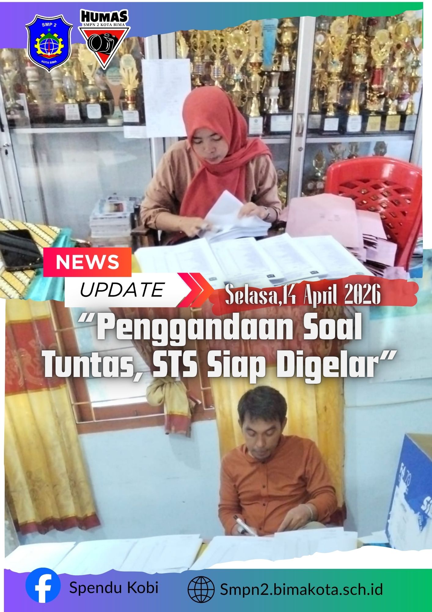 Kota Bima, Selasa, 14 April 2026 – Panitia Sumatif Tengah Semester (STS) di SMP Negeri 2 Kota Bima telah menuntaskan proses penggandaan soal sebagai bagian dari persiapan pelaksanaan ujian. Kegiatan ini dilakukan dengan penuh ketelitian dan tanggung jawab guna memastikan kelancaran pelaksanaan STS.