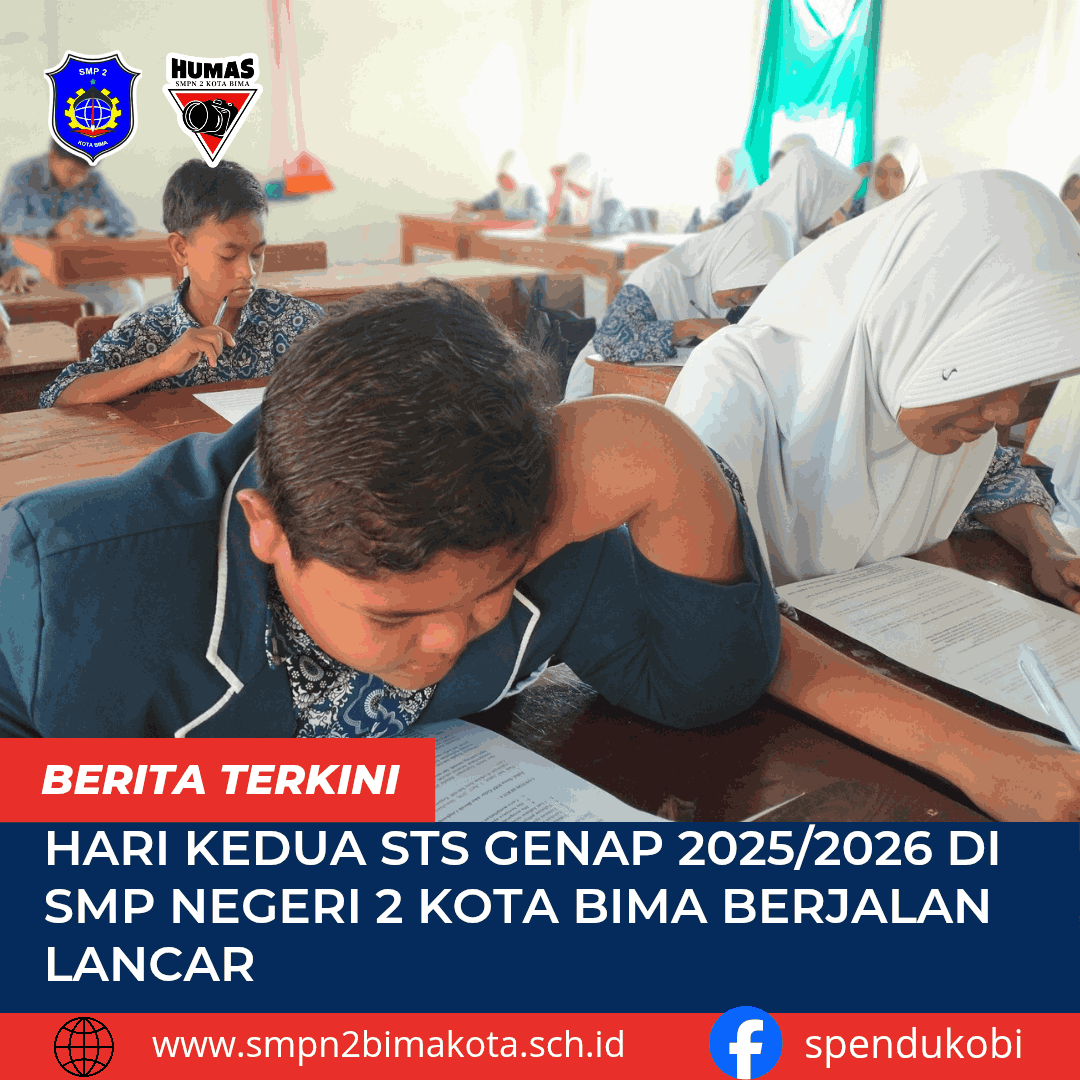 Kamis, 16 April 2026, pelaksanaan Sumatif Tengah Semester (STS) genap tahun pelajaran 2025/2026 di SMP Negeri 2 Kota Bima memasuki hari kedua. Kegiatan berlangsung dengan tertib, aman, dan lancar.