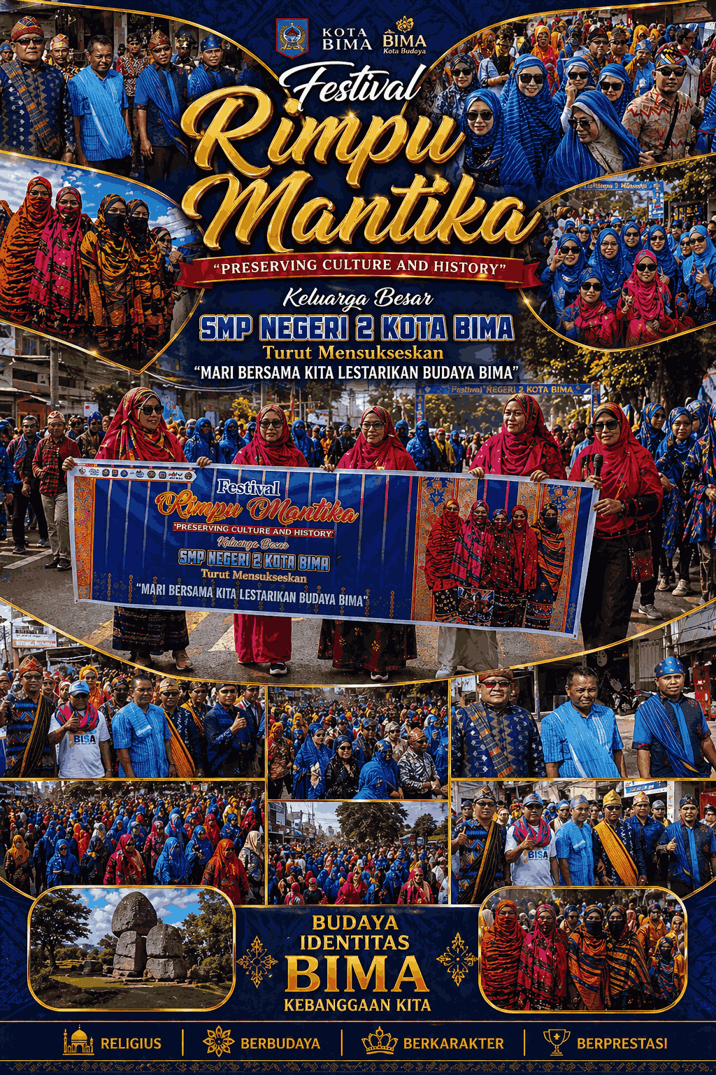 Salah satu peserta dari SMP Negeri 2 Kota Bima turut berpartisipasi dengan membawa spanduk bertuliskan ajakan untuk melestarikan budaya dan sejarah. Kehadiran para pelajar ini menjadi simbol bahwa generasi muda memiliki peran penting dalam menjaga warisan budaya daerah.